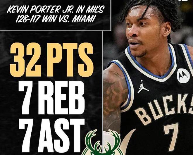 雄鹿灭热火9战7胜:波特32+7+7近15年队史唯二后卫 鲍威尔26分
